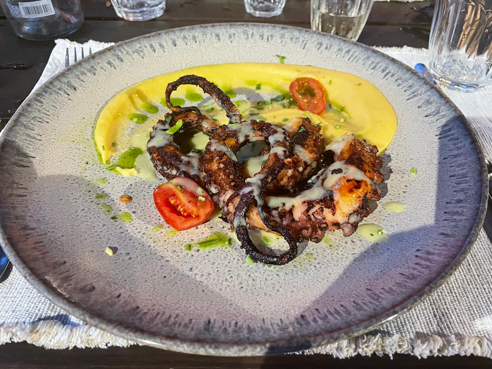 Natürlich hat er mich auch mit Spezialitäten überrascht: gegrillter Oktopus auf einem cremigen Püree, unglaublich zart und voller Geschmack.